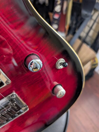 • Two control knobs (master volume, master tone with built-in push/pull coil tap switch)