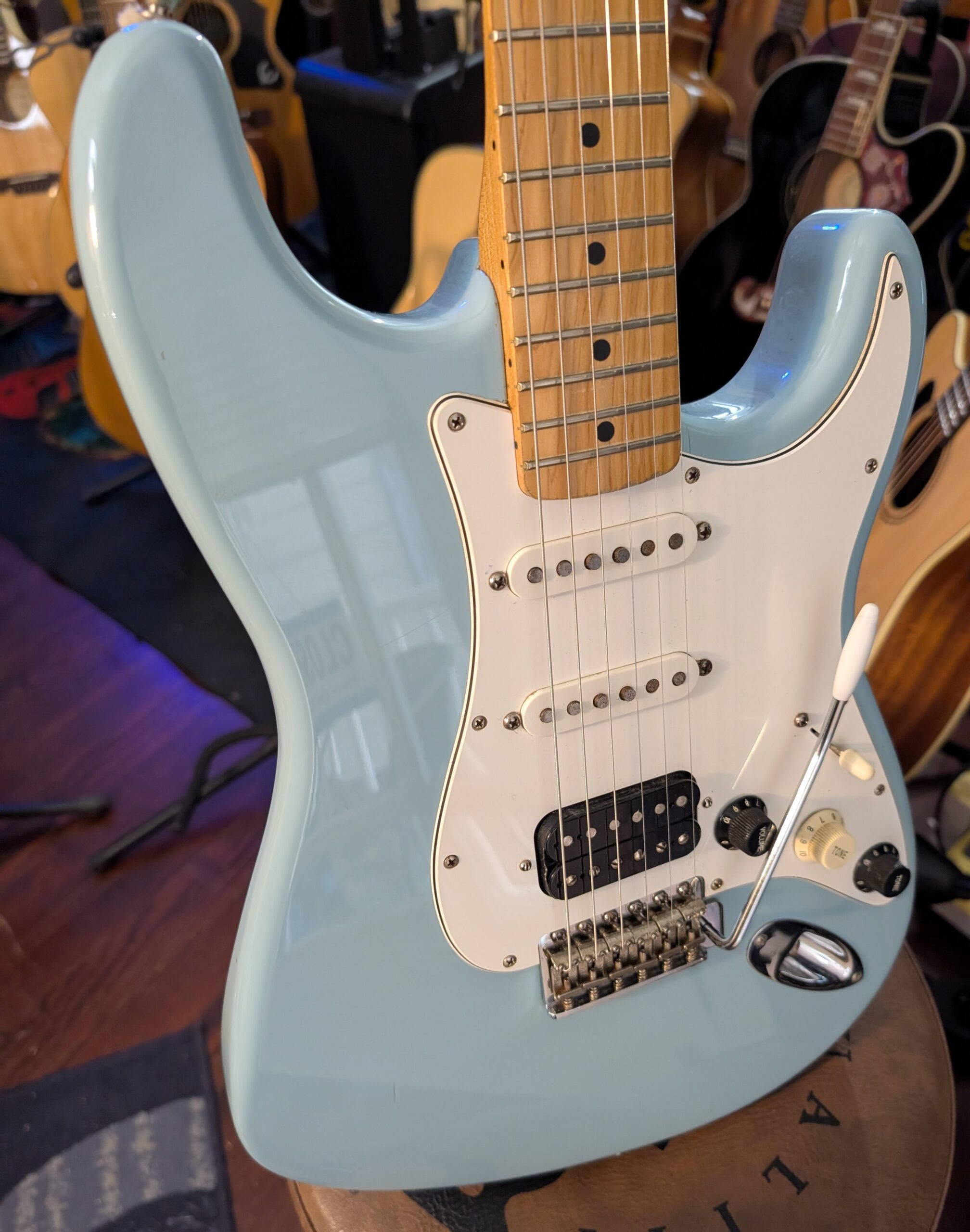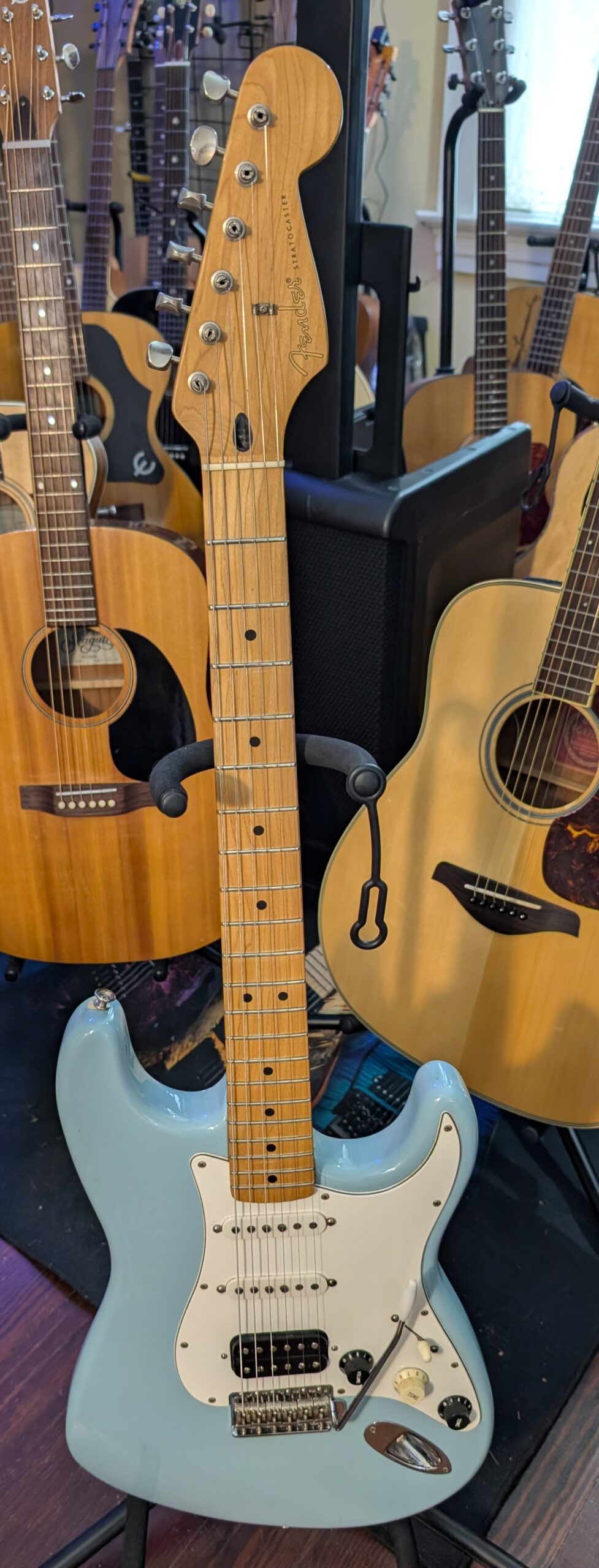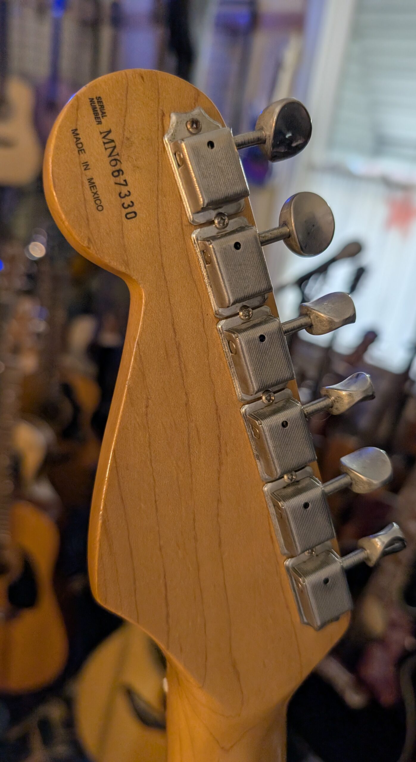 1996 model. Maple neck and fretboard. New DHS strings. Plays great. Fender padded gig bag.
