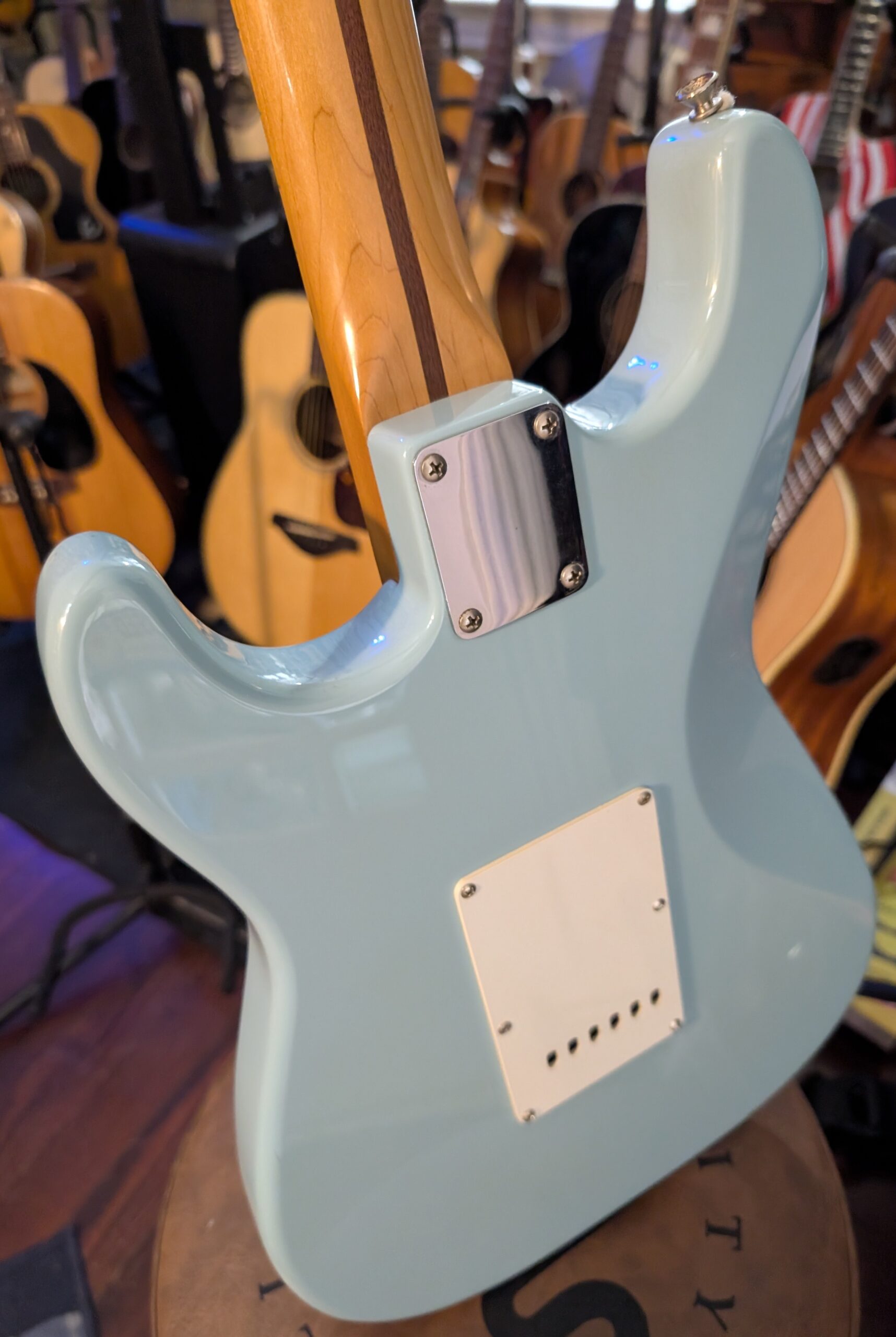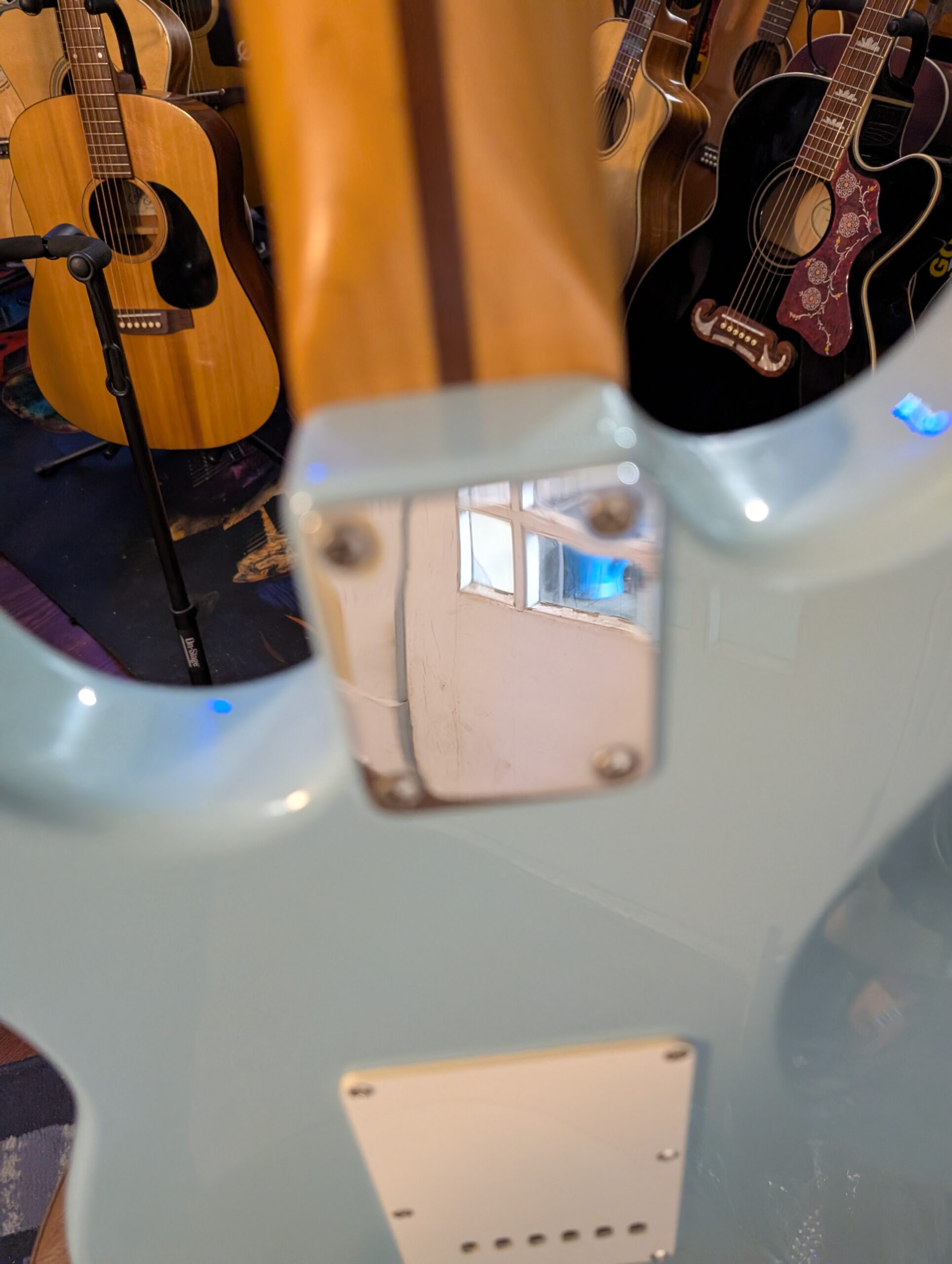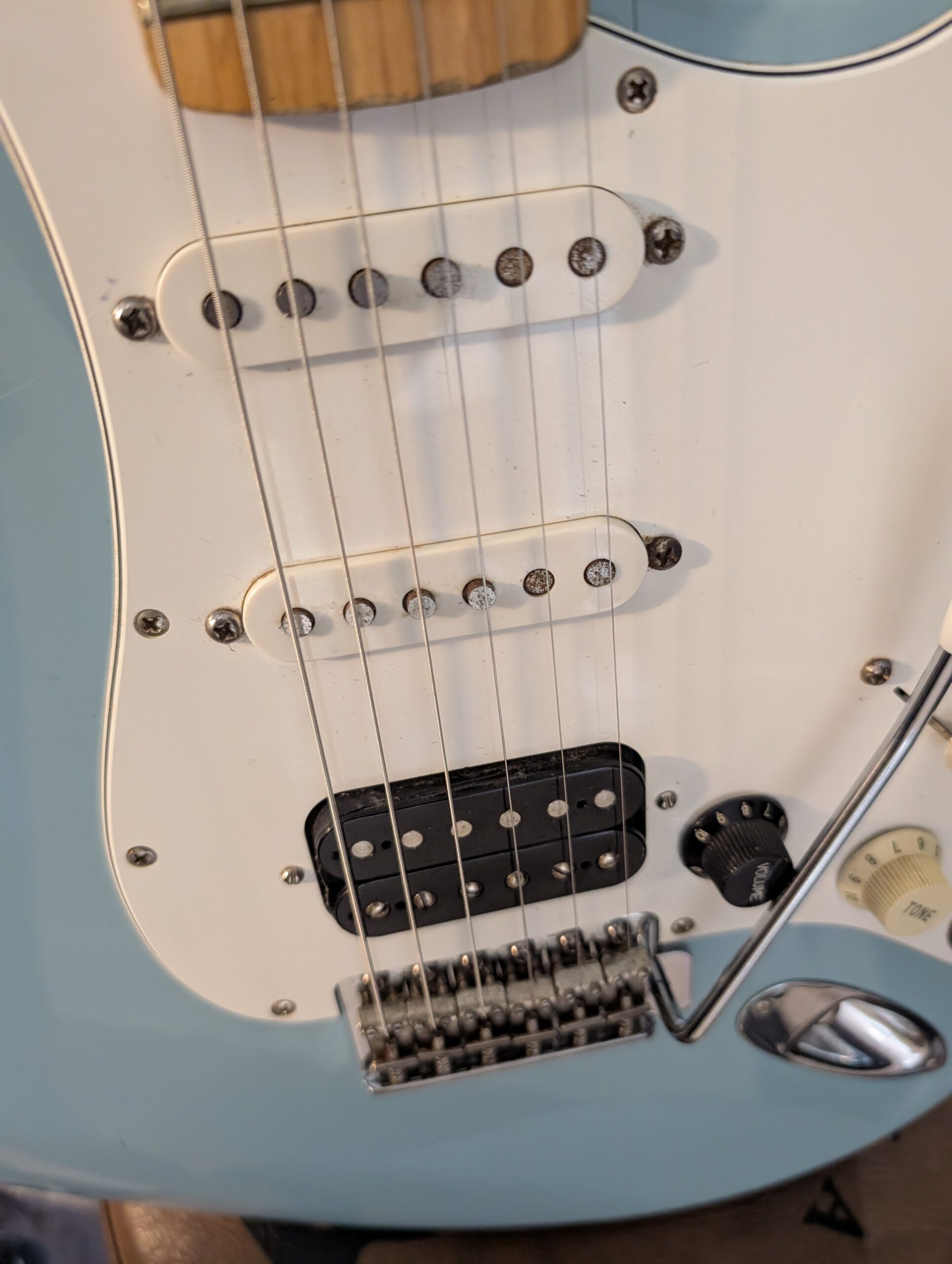 1996 model. Maple neck and fretboard. New DHS strings. Plays great. Fender padded gig bag.