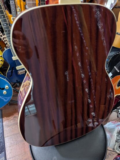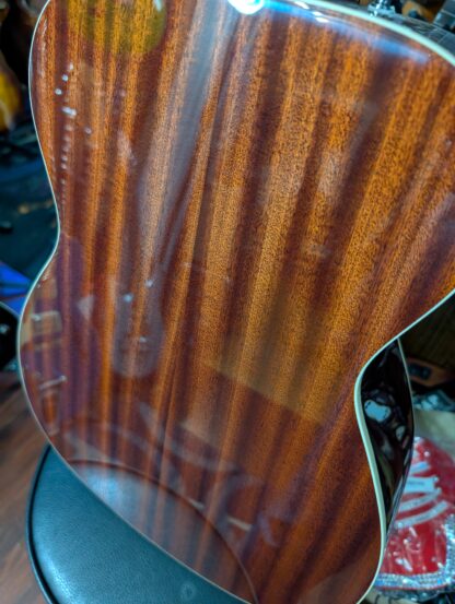 Solid mahogany back and sides look sharp and enhance the richness and overall resonance of this guitar’s tone