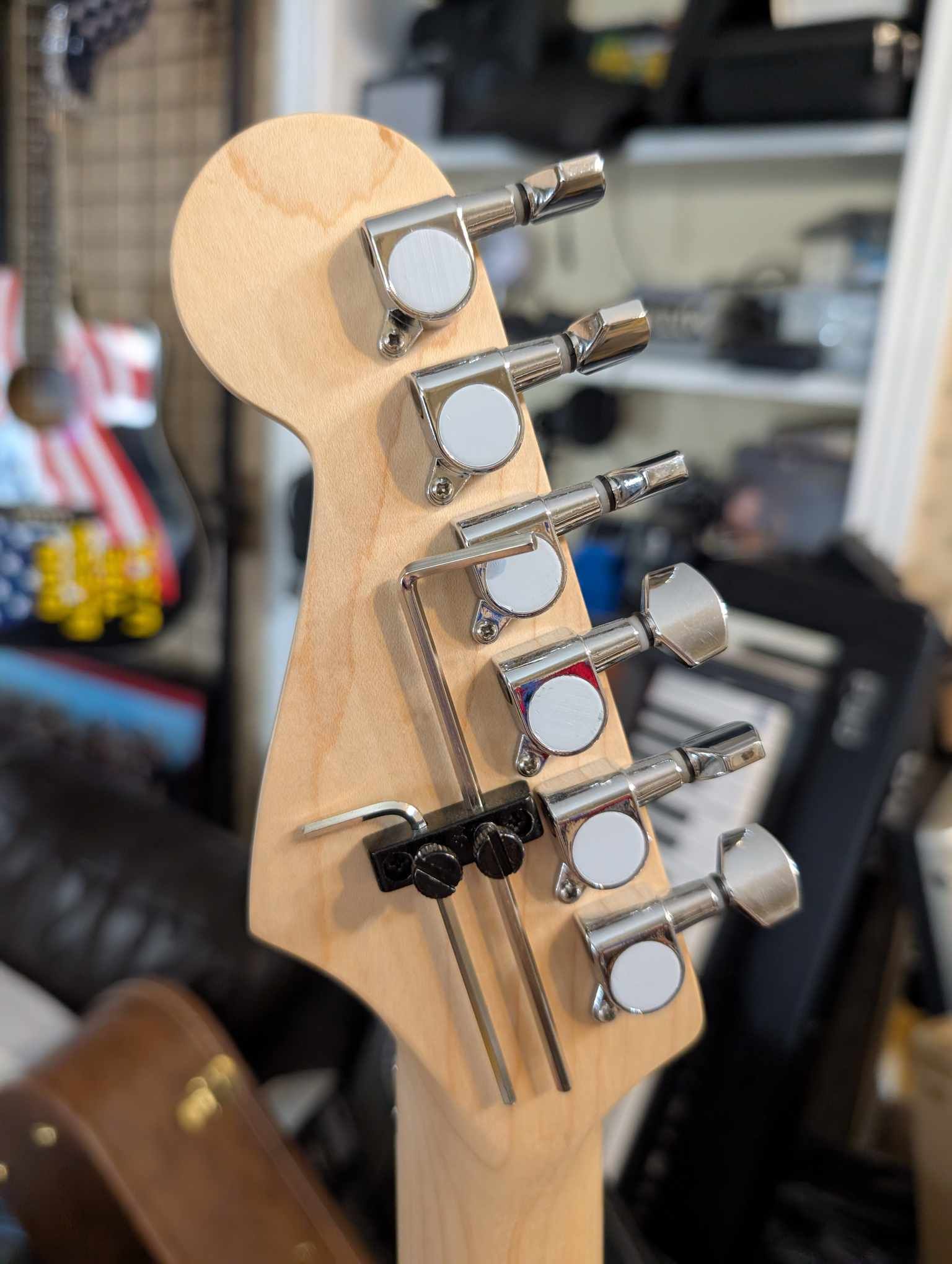 Custom Black and Orange L3DR “WG” Floyd Rose Original Bridge and Locking Nut, Seymour Duncan Hot Rodded pickups SH4N-SH2, Mighty Mite Strat Neck. Case included