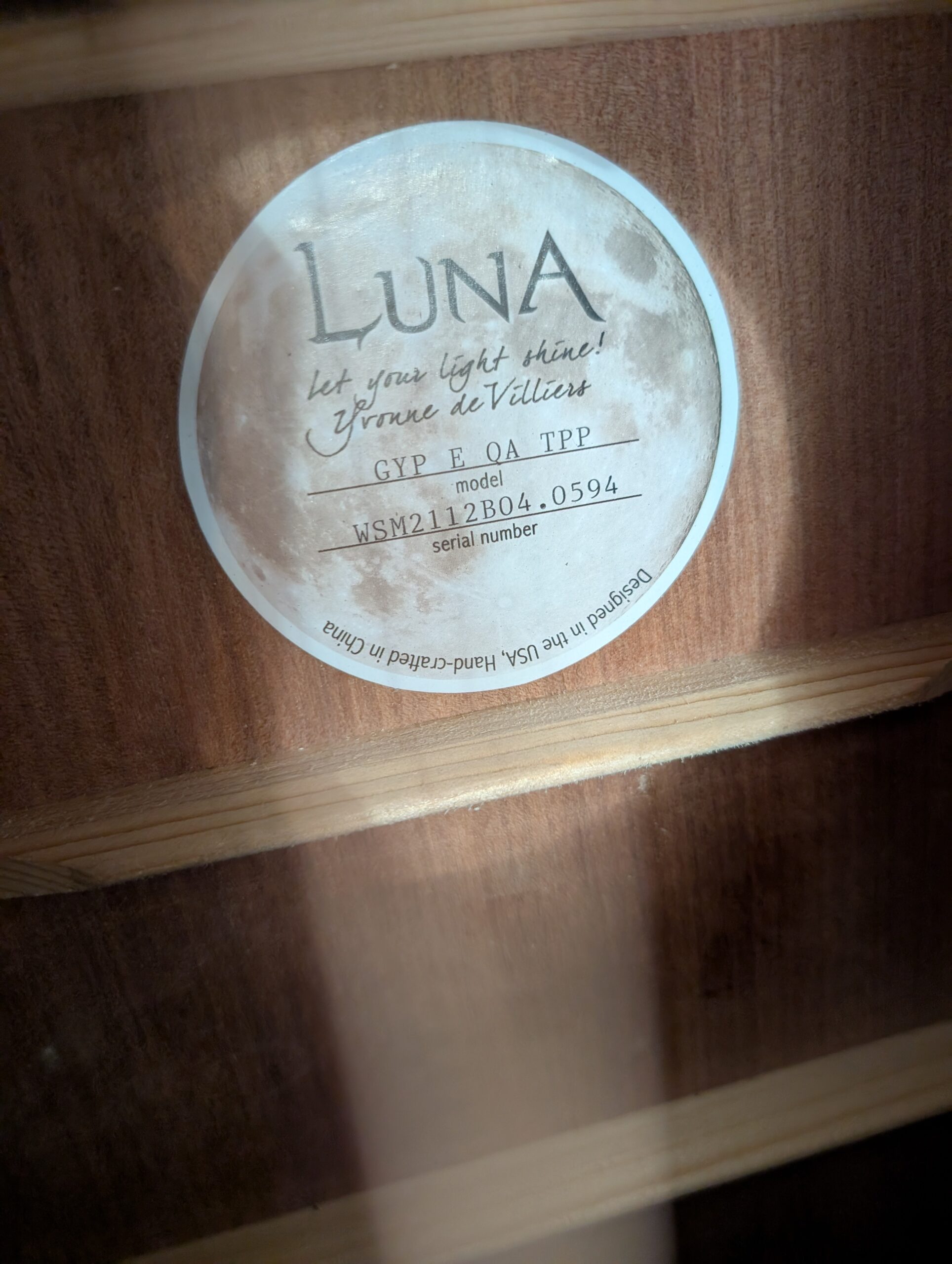 Black walnut fingerboard, 12″ radius, MOP Moon Phase inlays