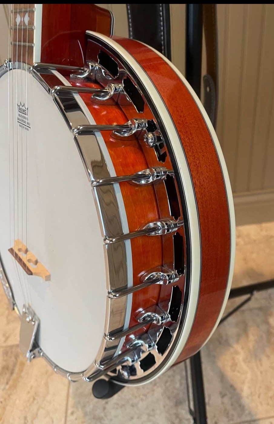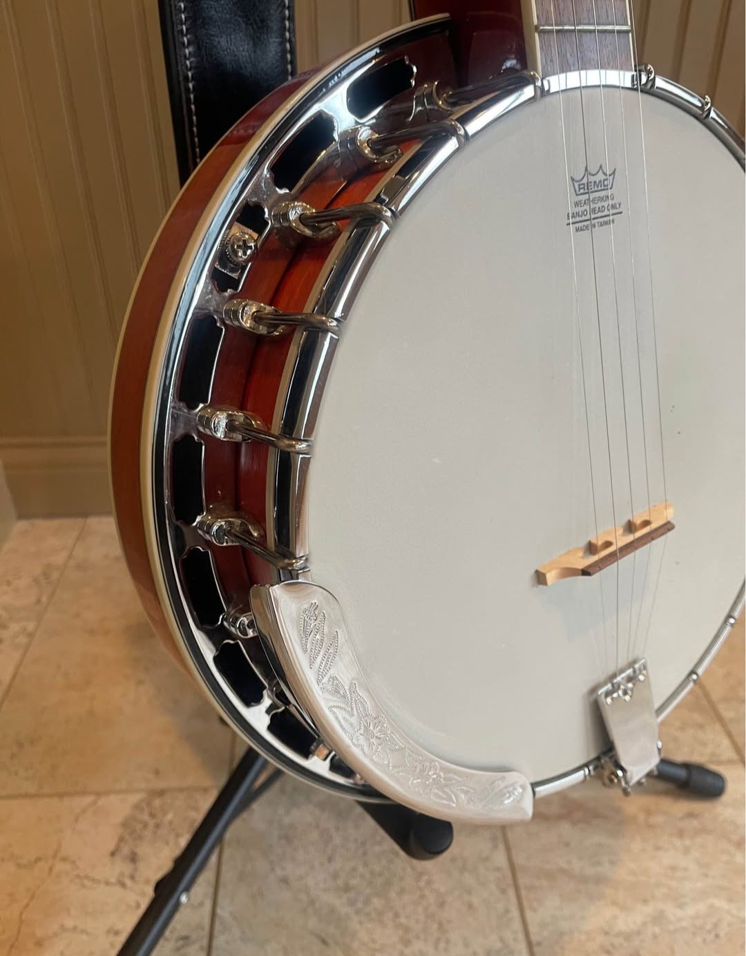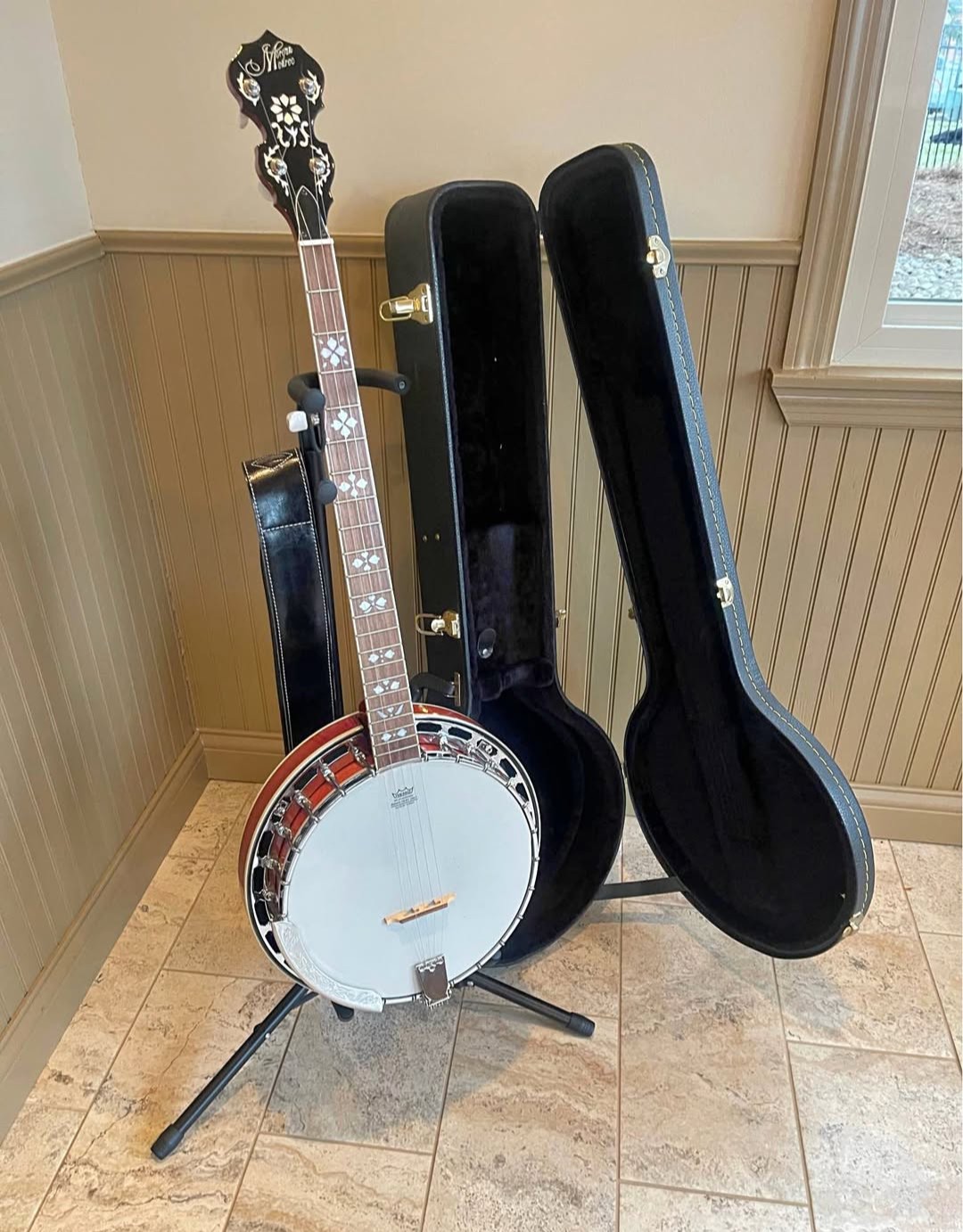 The banjo is beautiful and well made. The materials and craftsmanship are top-notch and well beyond other instruments in this price range. The banjo alone is a steal at this price but you also get a really nice hard shell case. Pro setup. Strap included.