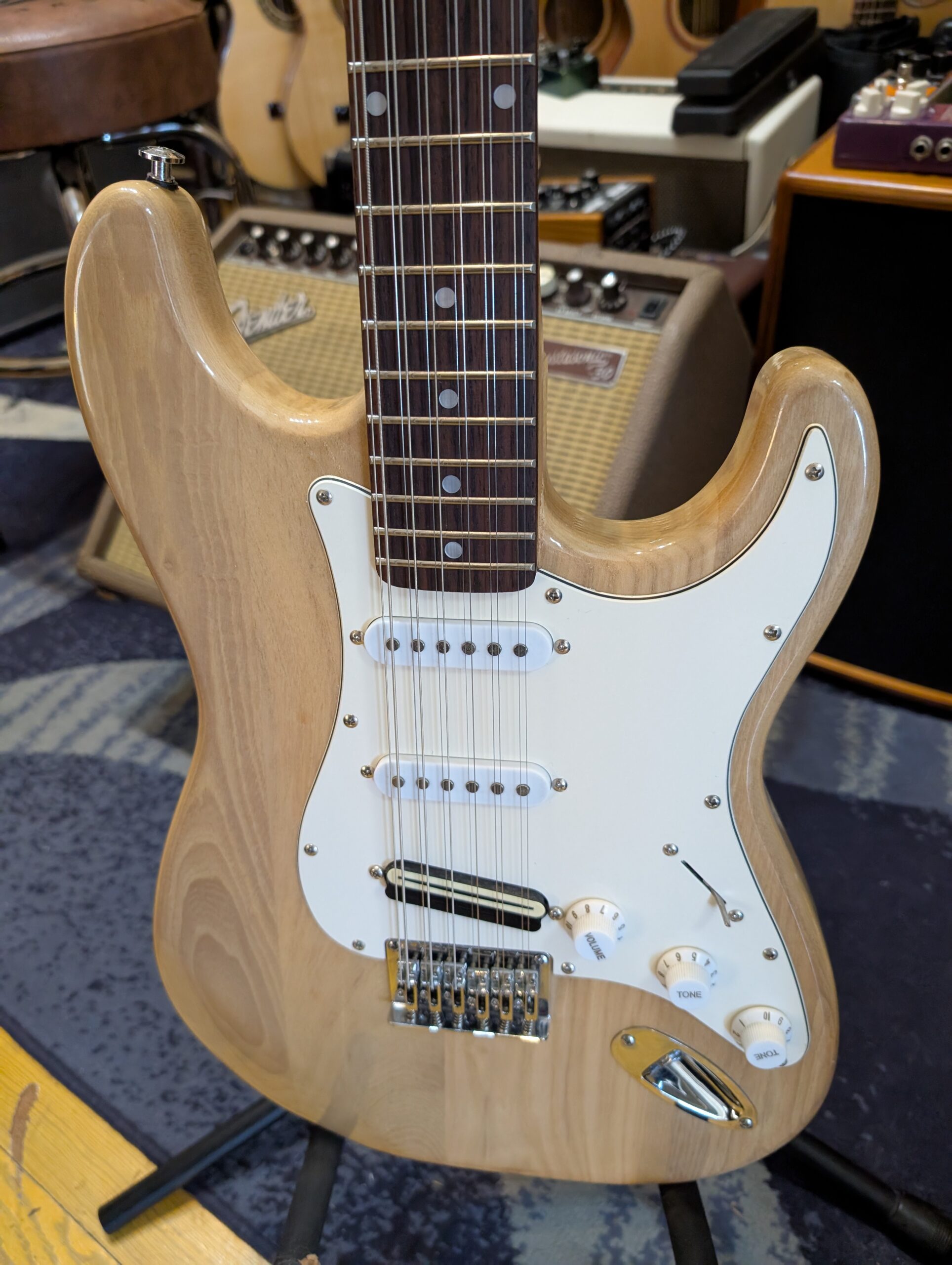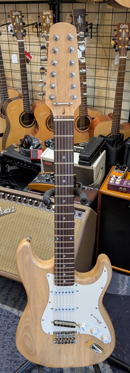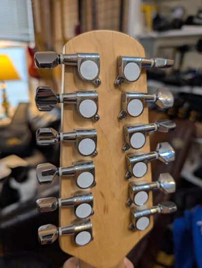 Not sure who the maker is but this is a great playing and sounding electric 12-string with ash body. New D’Addario strings and gig bag.
