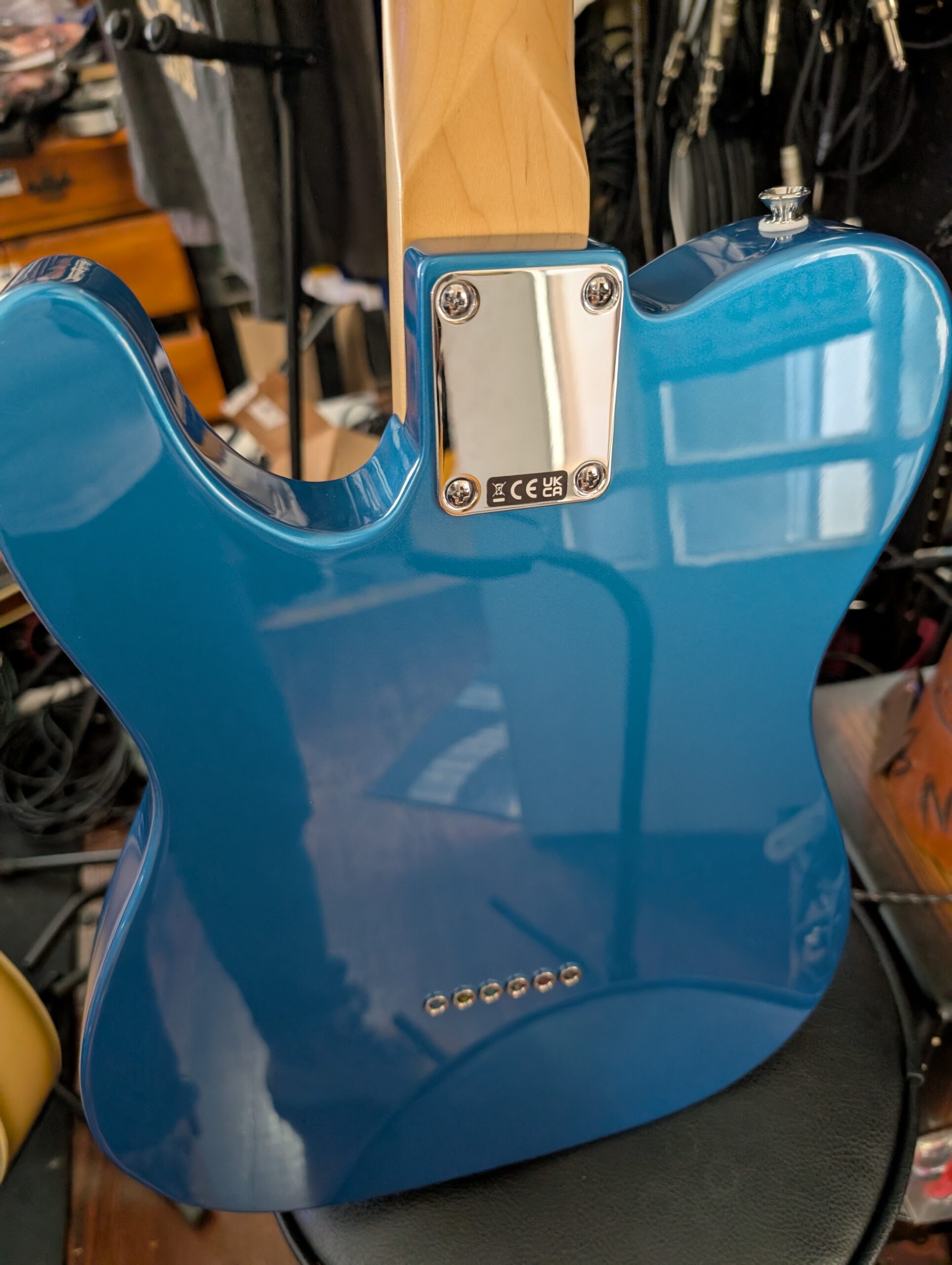 Bridge: String-through-body Tele with satin chrome steel block saddles
