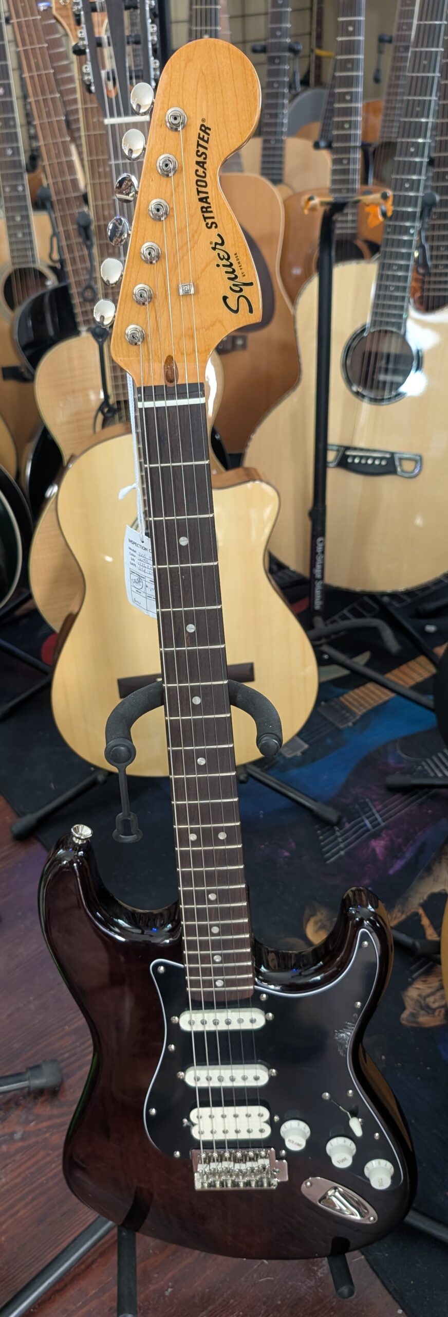 - Fender-designed alnico pickups in HSS configuration with 5-way switch