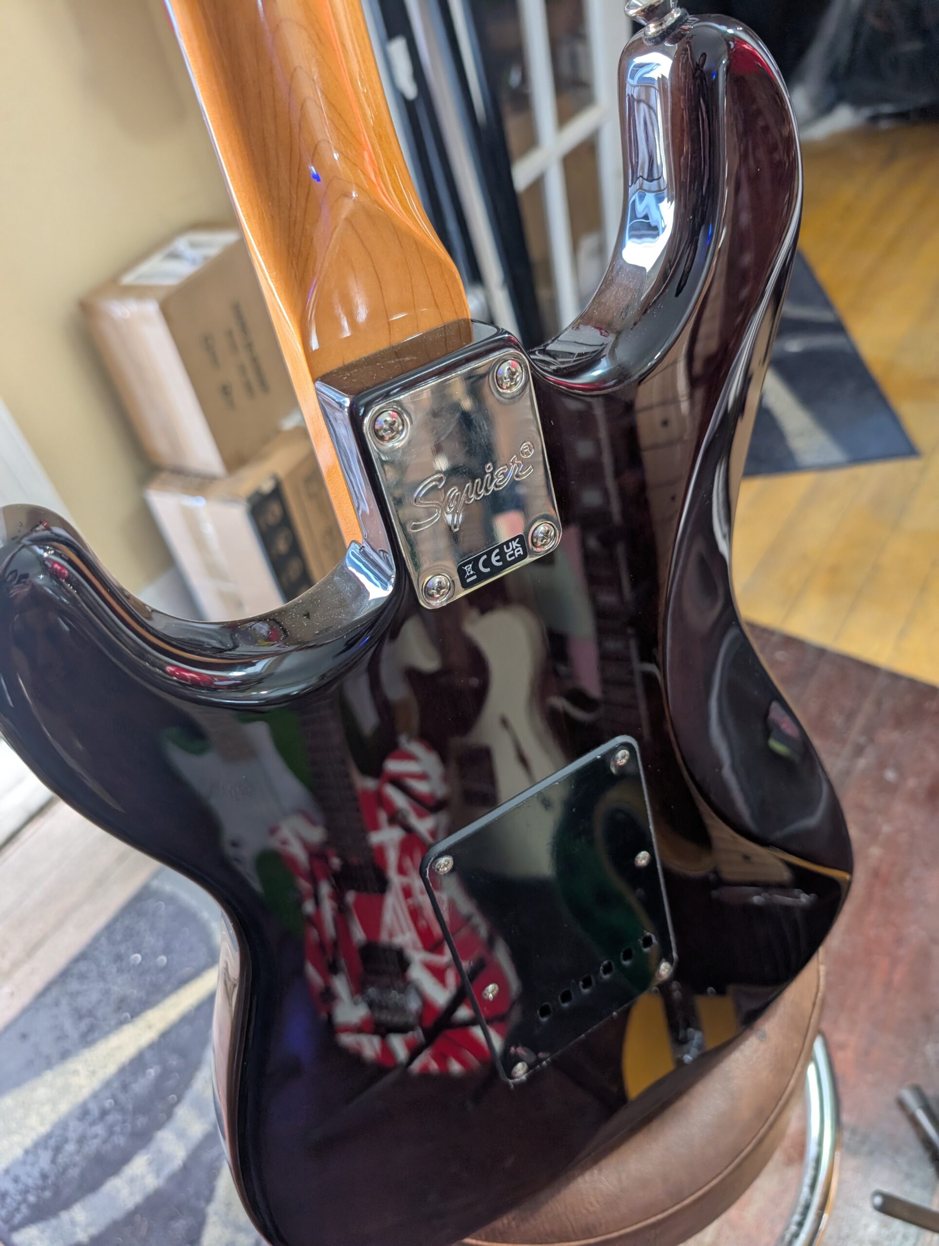 - Contoured poplar body with pickguard and gloss finish